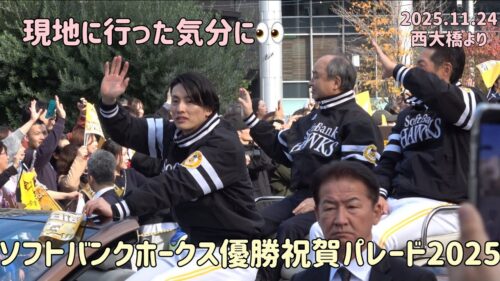 ソフトバンク 福岡ソフトバンクホークス優勝祝賀パレード2025(柳町達・周東佑京・柳田悠岐・孫正義他)㊗️西大橋付近より📹2025.11.24