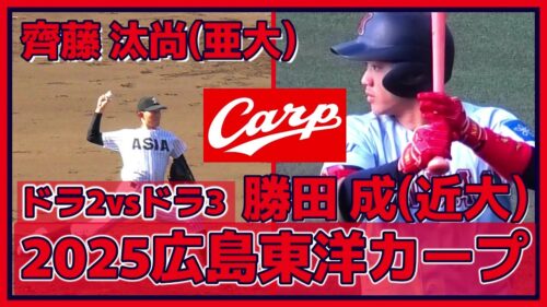 広島 【≪2025広島東洋カープドラフト指名選手対決≫スケール感のあるMAX152キロ右腕と三拍子揃った小柄な内野手/侍ジャパン大学代表候補選手強化合宿】亜細亜大・齊藤 汰直vs近畿大・勝田 成