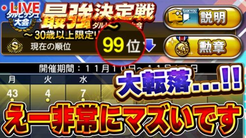 プロスピ 【生放送】最強決定戦99位に転落…。どうしましょう皆さん【プロスピA】