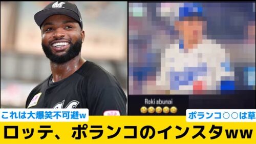 ロッテ 【爆笑】ロッテ、ポランコのインスタwwwww【千葉ロッテマリーンズ】【プロ野球反応集】