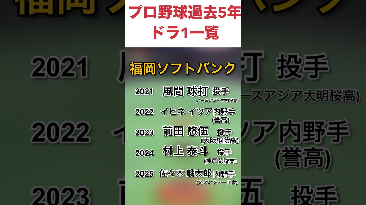 プロ野球過去5年ドラ1一覧 #NPB #ドラフト #甲子園 #大学野球 #社会人 #アマチュア #育成