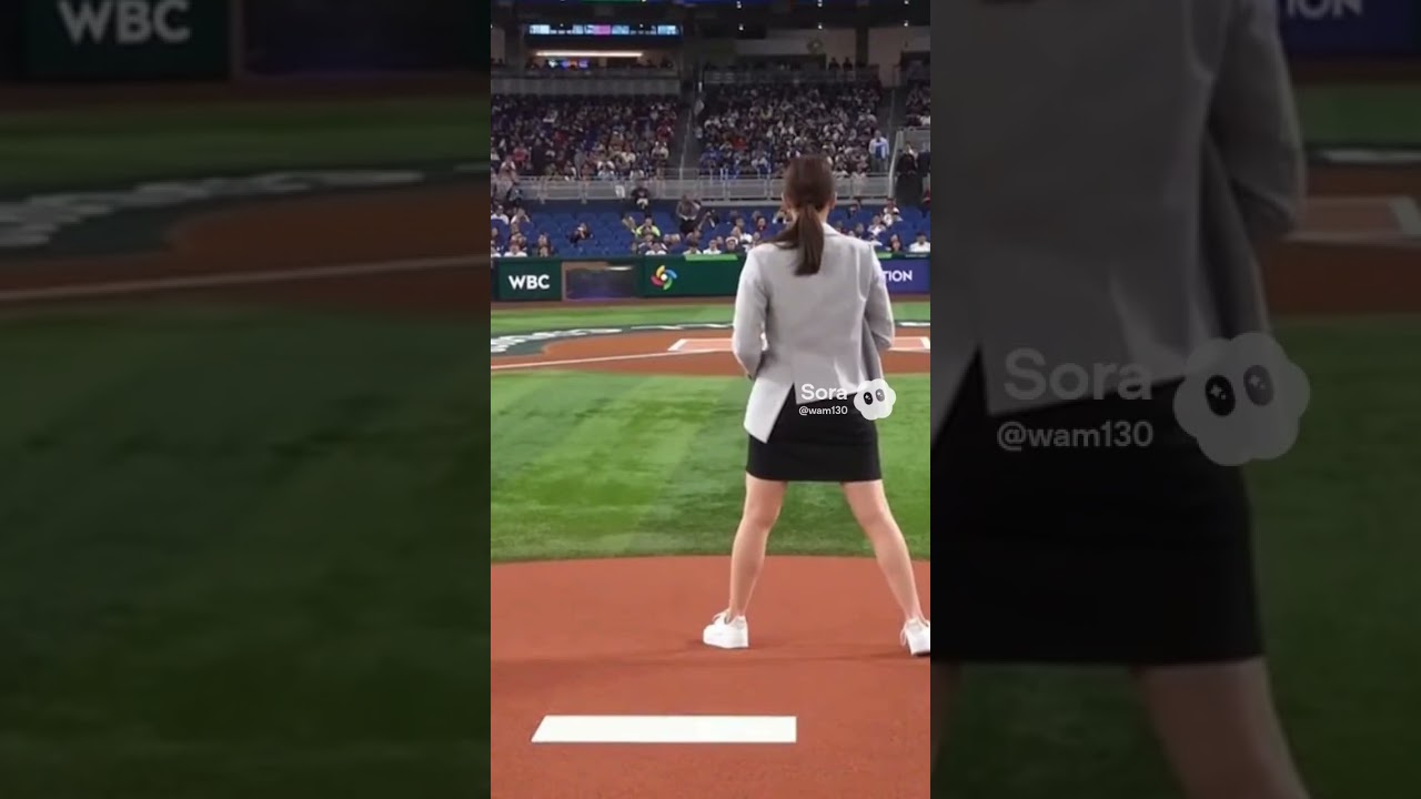 【実写】美女OLの始球式が140キロで“音”が変わった瞬間(中継風ワンカット)※フィクション