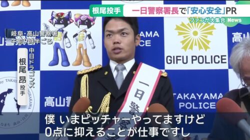 中日 「投手は失点ゼロ目指す、犯罪もゼロ目指して」ドラゴンズ根尾投手が一日警察署長 岐阜県高山市 (25/12/10 16:37)