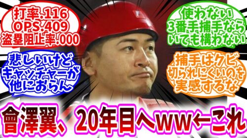 広島 【広島東洋カープ反応集】「會澤翼、20年目のシーズンへww←これ」に対する、野球民の反応集/打率.116 OPS.409 盗塁阻止率.000/悲しいけどキャッチャーが他におらん/捕手はクビ切られにくい