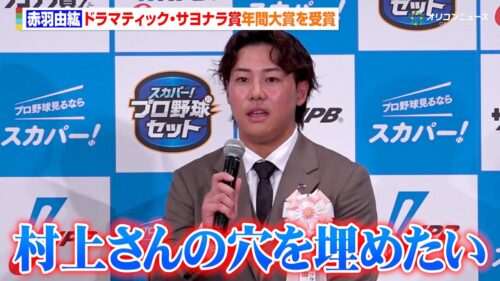 ヤクルト ヤクルト・赤羽由紘、年間サヨナラ大賞を受賞!来季に向けて「村上宗隆さんの穴を僕が先頭になって埋めたい」 2025 スカパー! ドラマティック・サヨナラ賞 年間大賞表彰式・トークショー