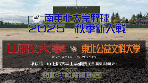【南東北大学野球連盟_2025秋季新人戦準決勝】山形大学 vs. 東北公益文科大学