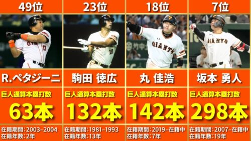 読売ジャイアンツ歴代通算本塁打数ランキングTOP50