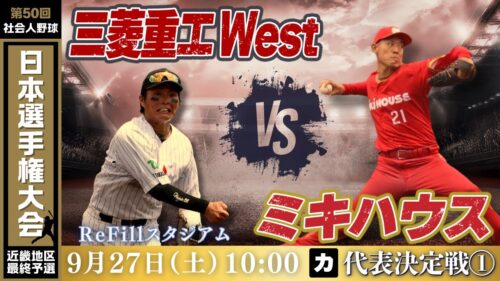 【第50回社会人野球日本選手権大会 近畿地区最終予選】9月27日(土)10:00|ReFill|代表決定戦①|カ|三菱重工West vs ミキハウス