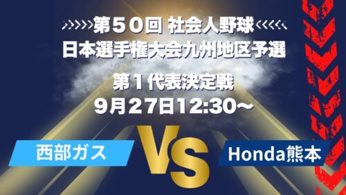 第50回 社会人野球日本選手権 九州地区予選 第一代表決定戦 西部ガス vs Honda熊本