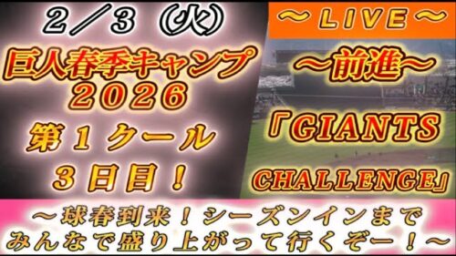 巨人 【巨人ファンの集い!】~2/3球春到来!巨人春季キャンプ2026!第1クール3日目!~【応援生配信!】