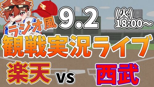 楽天イーグルス VS 埼玉西武ライオンズ 9/2【ラジオ実況風同時観戦視聴配信ライブ】