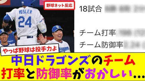 中日ドラゴンズのチーム打率と防御率がおかしい…【ネット反応集】