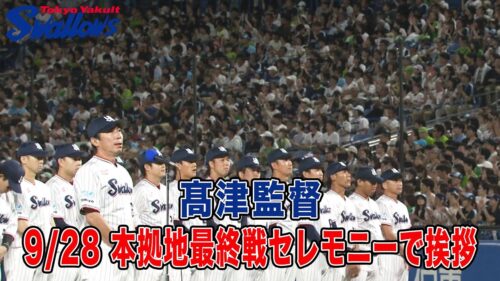 9月28日 本拠地最終戦セレモニー 髙津監督が挨拶 髙津監督が挨拶