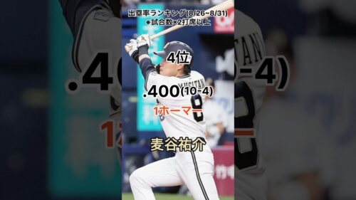 【オリックスバファローズ】週間出塁率ランキング(8/26~8/31) #オリックスバファローズ #プロ野球 #出塁率