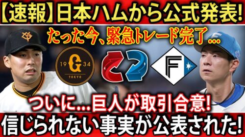 【速報】日本ハムから公式発表!たった今、緊急トレード完了…ついに…巨人が取引合意!信じられない事実が公表された!