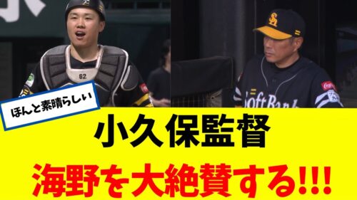 【絶賛】 小久保監督 海野を大絶賛する!!!!!! 【なんJ】 【ソフトバンク ホークス】
