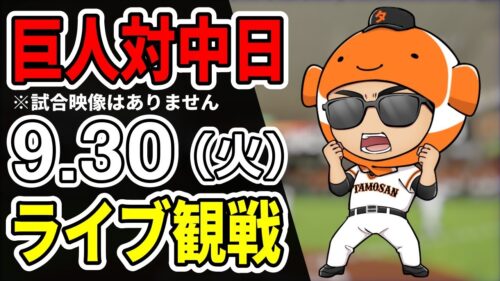 【巨人ライブ】9/30 巨人 対 中日ドラゴンズをみんなで応援するライブ!巨人戦を生配信中!!#読売ジャイアンツ
