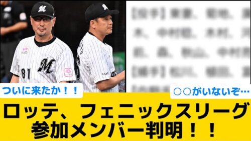 ロッテ 【判明】ロッテ、フェニックスリーグの参加メンバーが判明!!!!!【千葉ロッテマリーンズ】【プロ野球反応集】