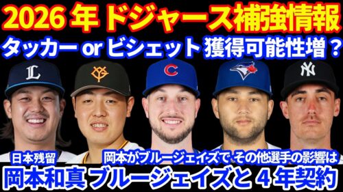 MLB 2026年MLB FA補強情報‼️ 岡本和真 ブルージェイズと4年60Mで合意💰 ドジャース 大物FA選手獲得可能性が更に上昇⁉️💰 髙橋光成はNPB残留へ‼️