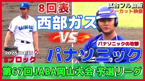 社会人野球 【≪試合フル動画(8回表)☆社会人野球≫前年度優勝の西部ガスと名門・パナソニック(2026年限りで休部)の対戦!/第67回JABA岡山大会予選リーグ】2025/04/14西部ガスvsパナソニック