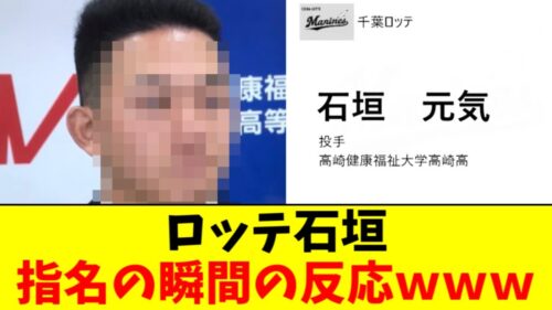 ロッテ 【悲報】ロッテ石垣くん、指名漏れしたみたいな顔をしてしまう…